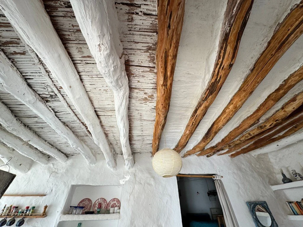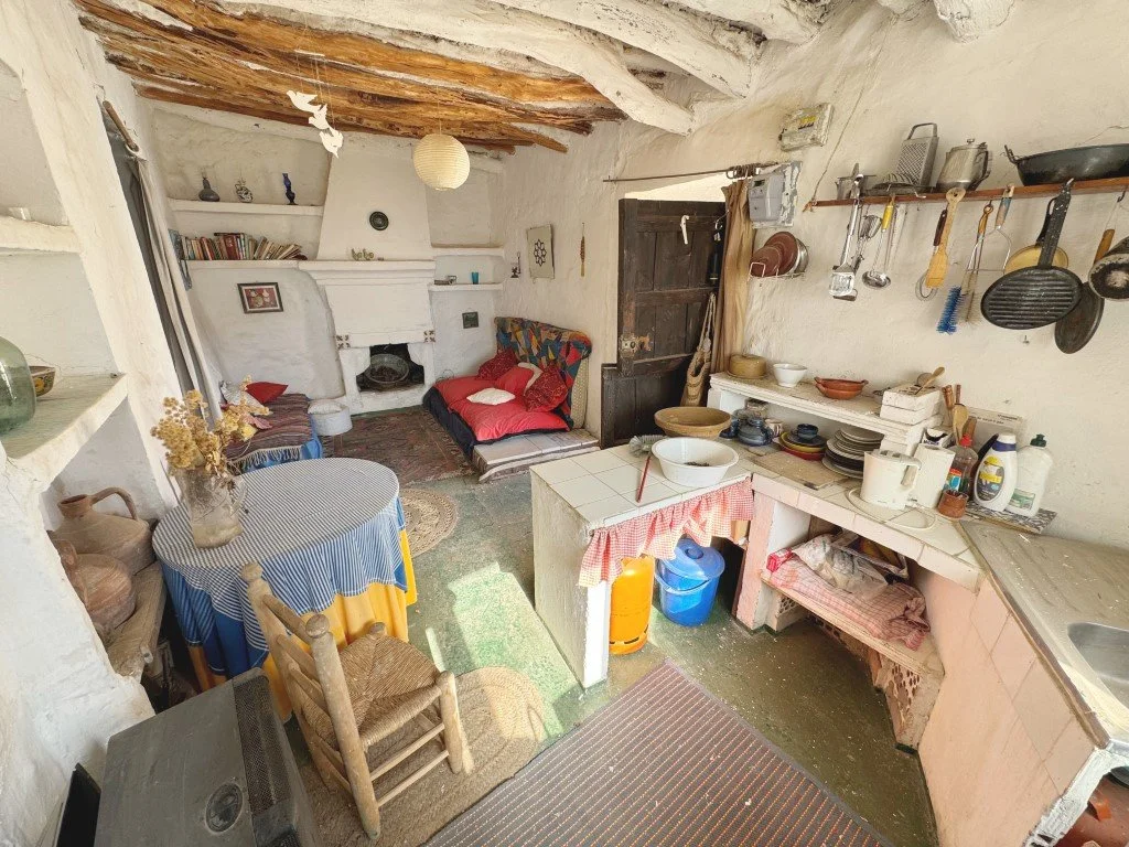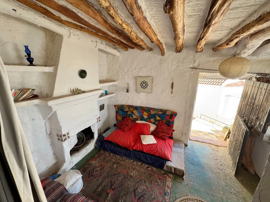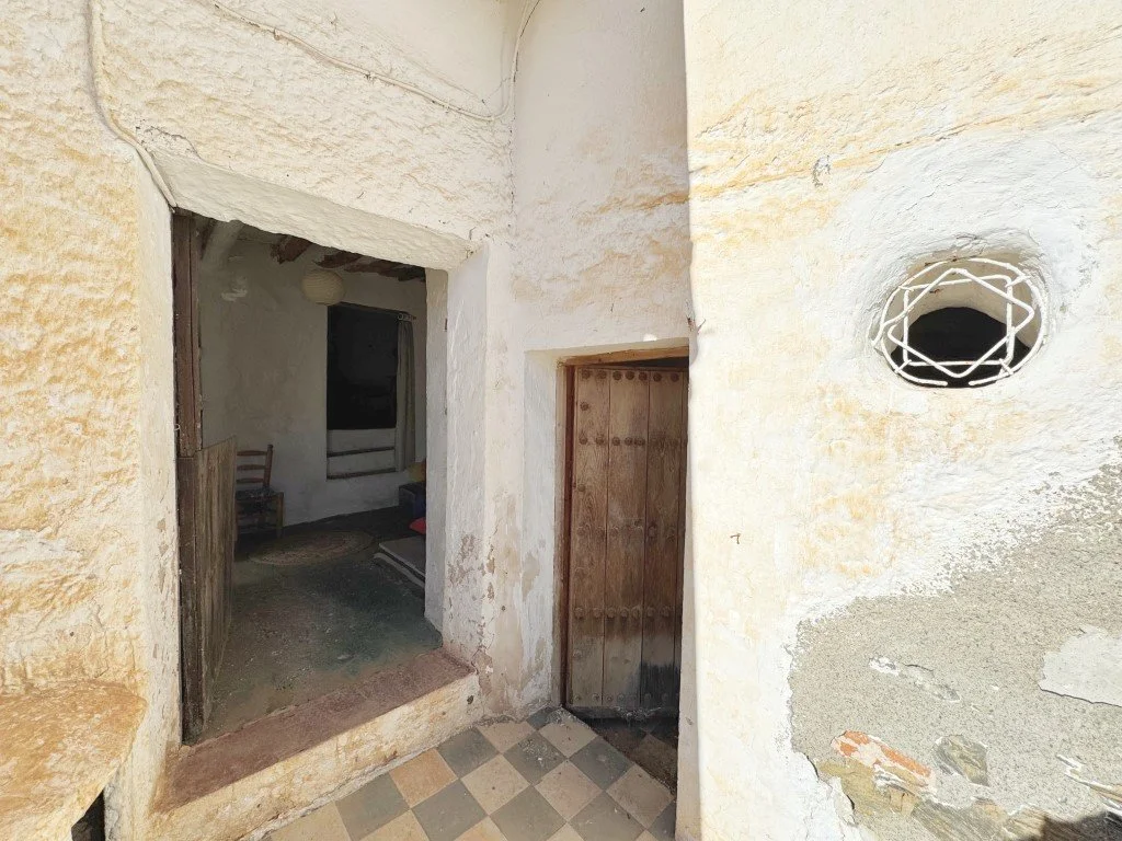 In the center of Polopos in a street with no traffic, this charming house has just come on the market. It needs some TLC to lift it to 21st century standards, but all the traditional elements of Alpujarran architecture are still in tact. It has wooden beams with cane in between for ceilings, 80 cm thick walls that retain heat in the winter and keep the heat out in the summer, old wooden doors and a traditional fire place.