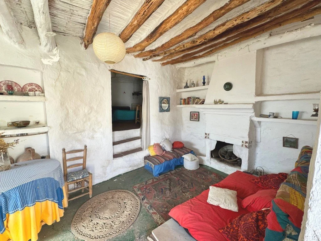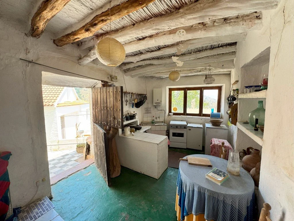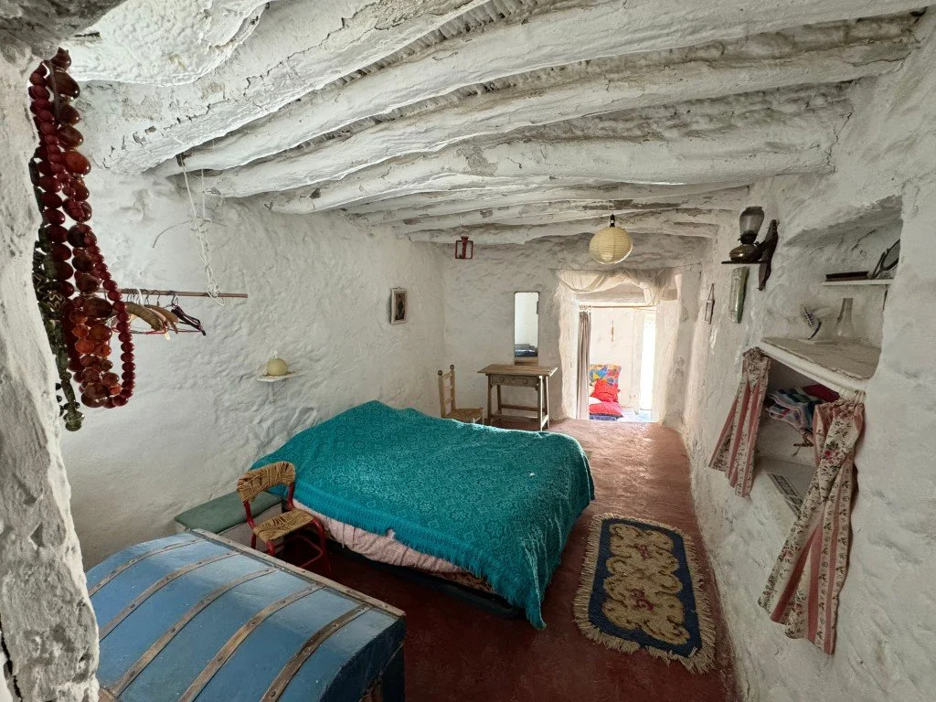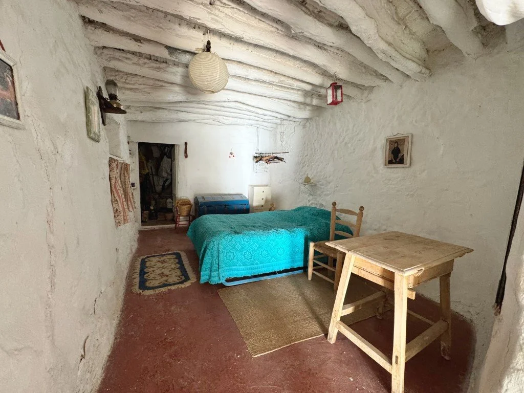 In the center of Polopos in a street with no traffic, this charming house has just come on the market. It needs some TLC to lift it to 21st century standards, but all the traditional elements of Alpujarran architecture are still in tact. It has wooden beams with cane in between for ceilings, 80 cm thick walls that retain heat in the winter and keep the heat out in the summer, old wooden doors and a traditional fire place.